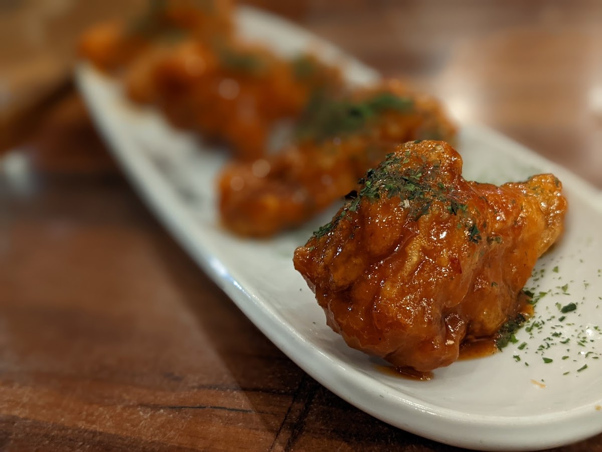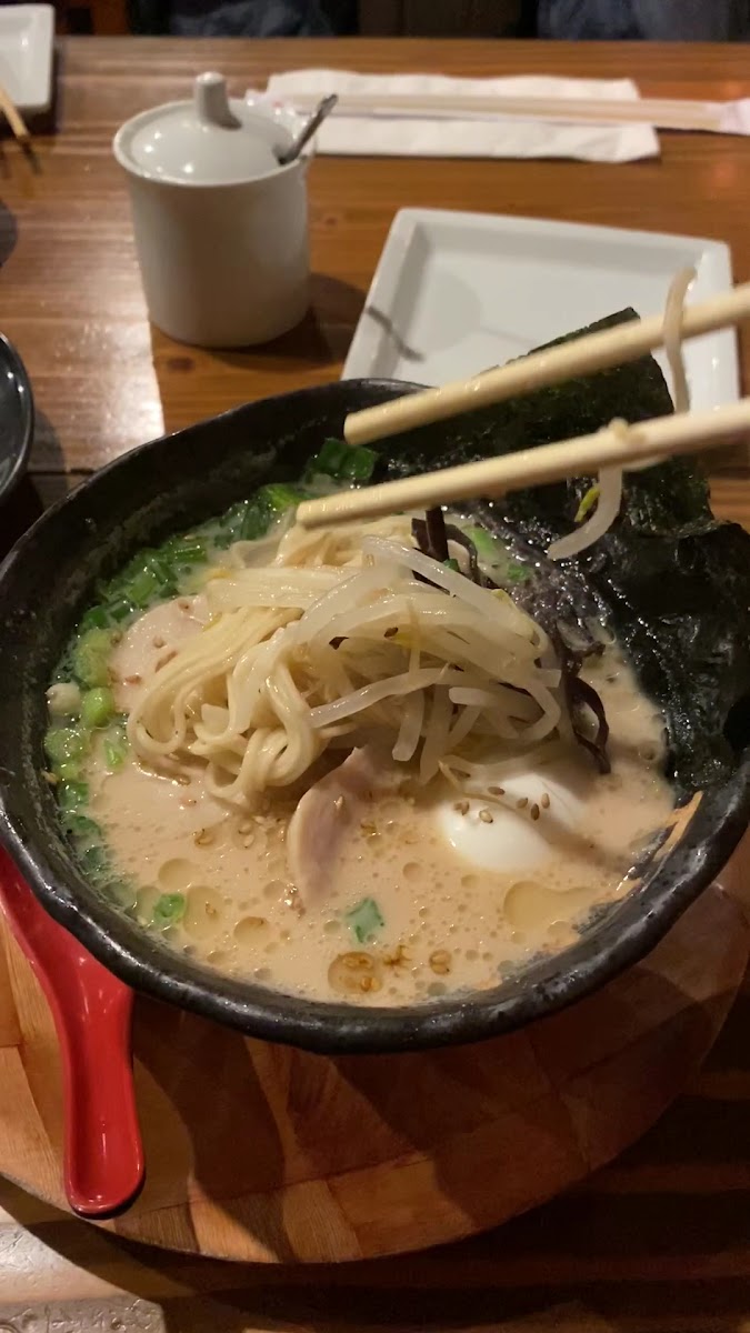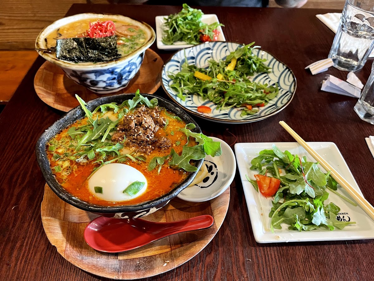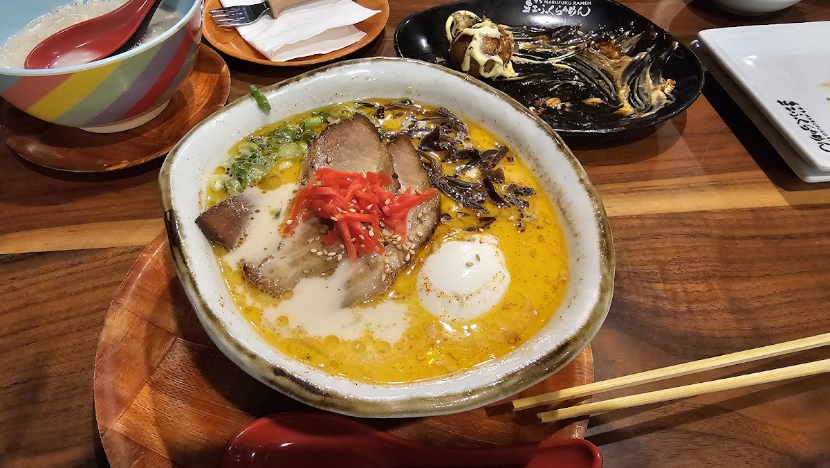 The food here centers on rich, creamy broths and tender noodles — the Hakata Tonkotsu Deluxe and Chicken Paitan DX stand out for their depth of flavor and balance. For those looking to complement their ramen, small plates like takoyaki, tempura Brussels sprouts, and spicy wings add variety and a hit of fun to the meal. The inclusion of unique items like shrimp tempura buns with yuzu mayo and house sake selections also adds to the distinct local twist on familiar Japanese dishes.