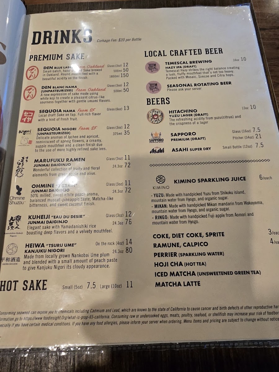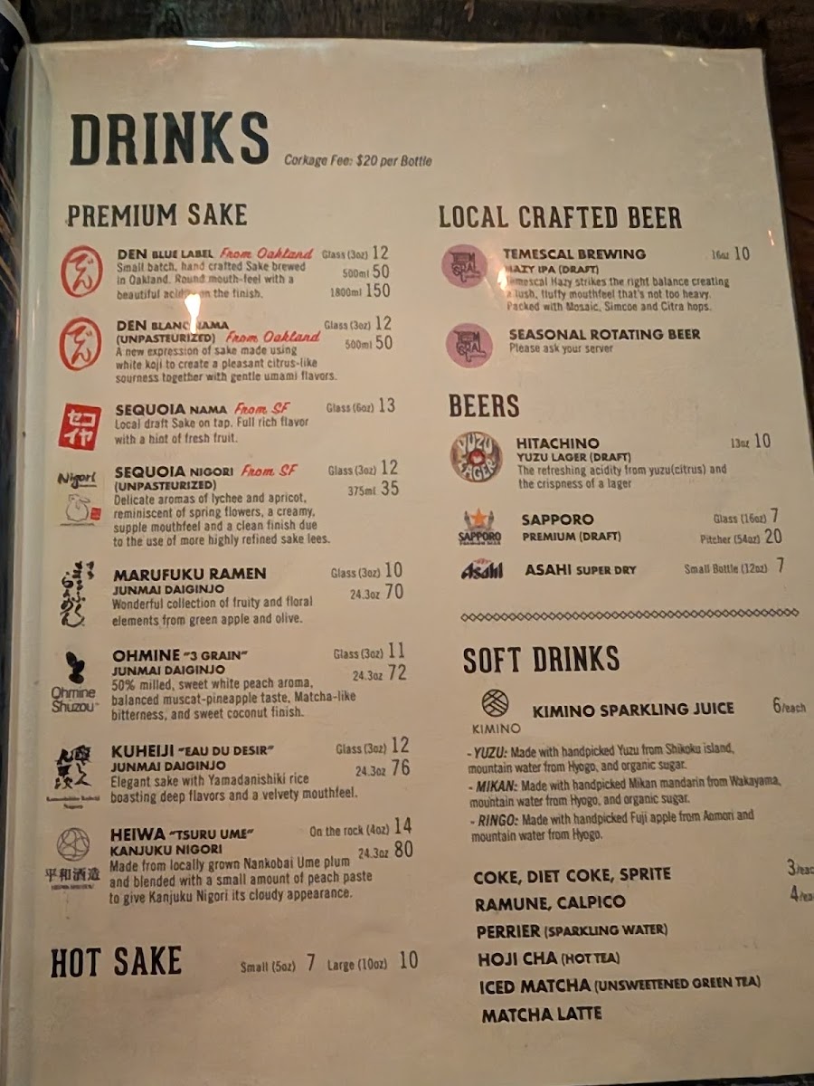The beverage offerings include a selection of Japanese beers, such as Asahi Super Dry and Autobahn Helles Lager, along with house sake to pair with the food.