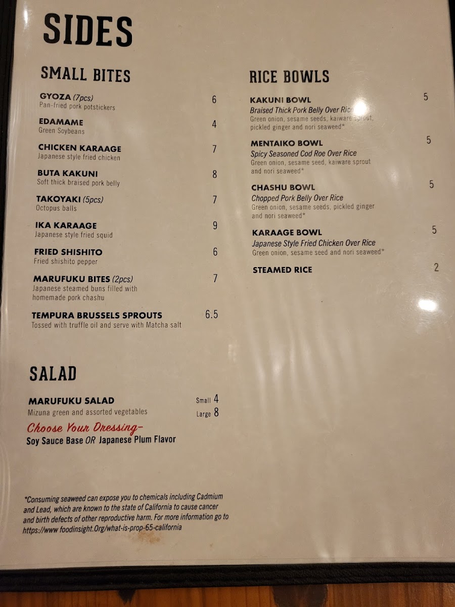 Rice bowls are available as standalone meals or companions to ramen, with choices such as the Kakuni Bowl (braised pork belly over rice), Mentaiko Bowl (spicy cod roe), Chashu Bowl, and Karaage Bowl (fried chicken).